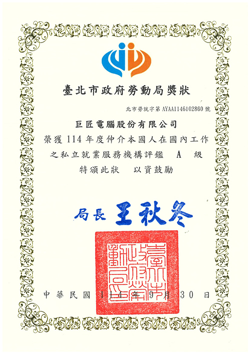 | 就業服務評鑑 | 臺北市勞動局 | 就業服務機構評鑑 A級 |